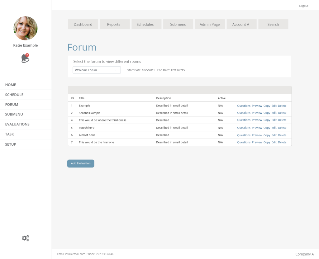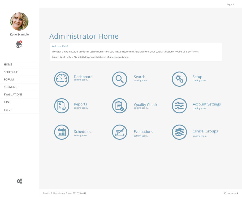 This week I focused on creating a simple and clean dashboard that can be applied to school or office setting. The goal of the dashboard is making the navigation feel new without taking away from the usability, and keeping the notifications in focus. To accomplish this, I created a navigation that rest on the left with a notification alert under the users photo.