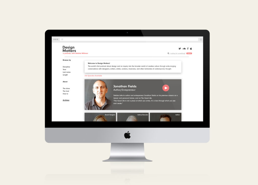 While I’m at the office I often have a design podcast running in the background. One of the podcast sites I visit most is Design Matters with Debbie Millman, so I decided to make a redesign concept in my spare time.