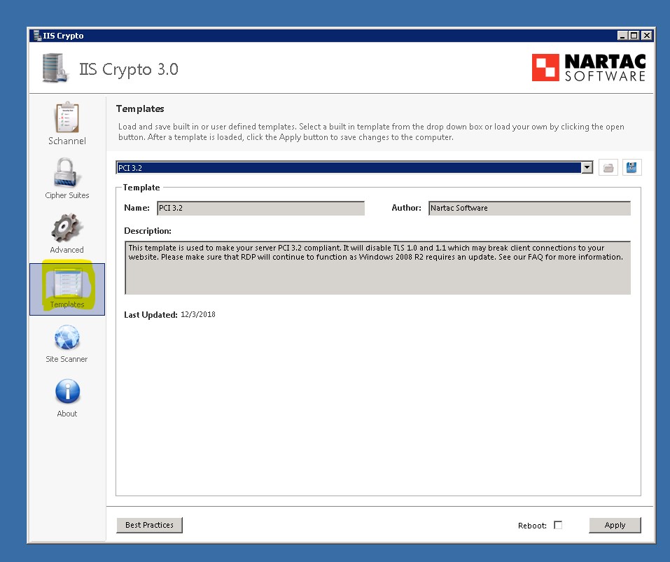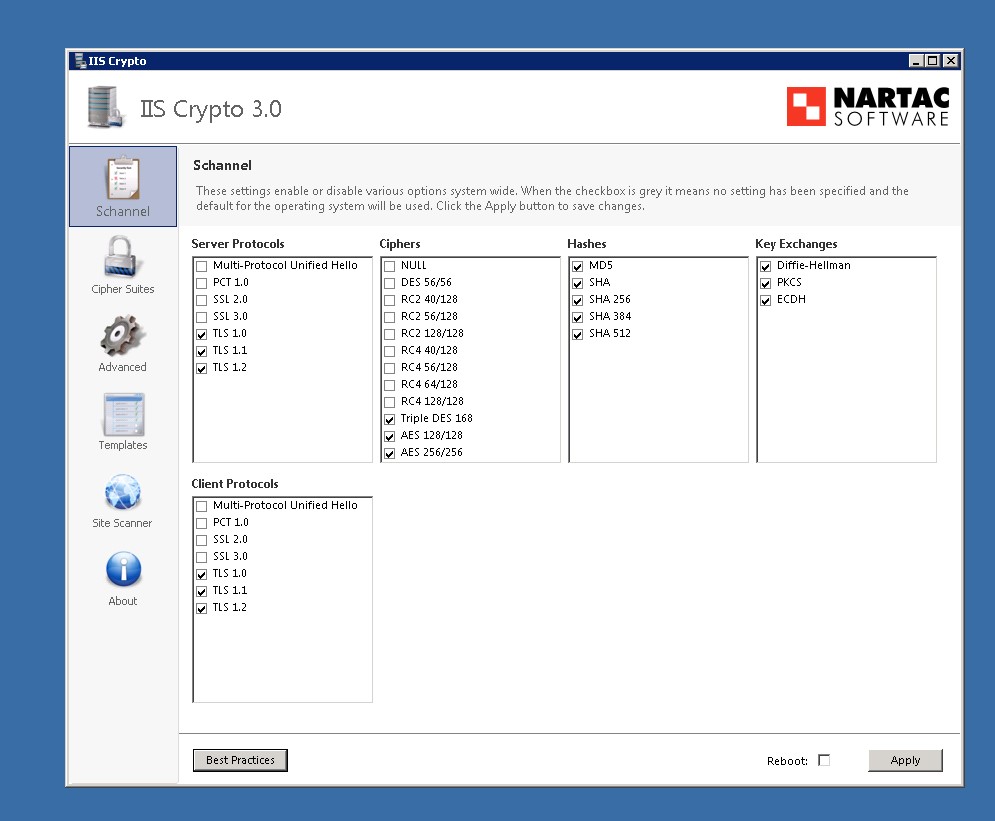 Using IISCrypto Tool we updated the Registry Files to update the TLS settings.