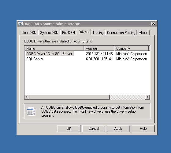 Then we need to update the connection string to use the current ODBC SQL 13 driver.