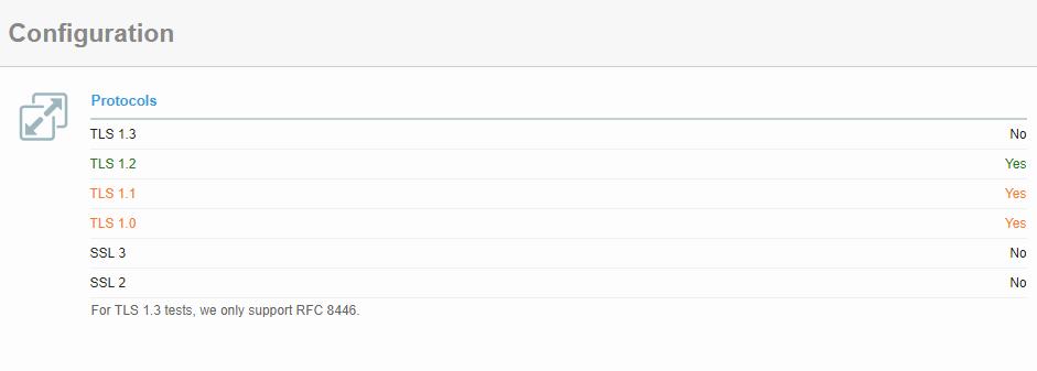 We used https://www.ssllabs.com/ssltest to get the current TLS Configuration.