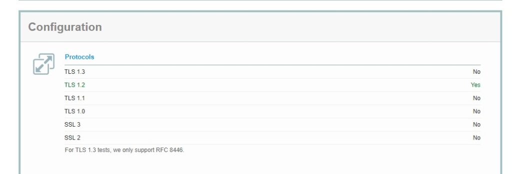 The results showed TLS 1.0 and TLS 1.1 where enabled. This was causing the issue as we need TLS 1.0 and TLS 1.1 to be removed.
