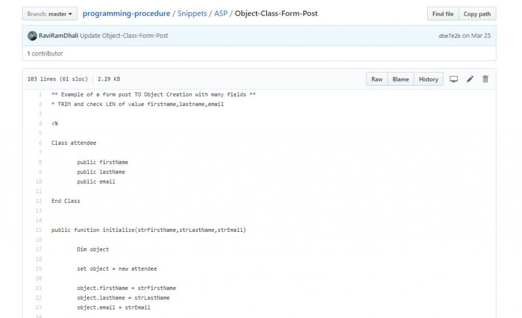 See our GitHub Classic ASP Code samples updated by Dhali’s Classic ASP Developer / Programmer